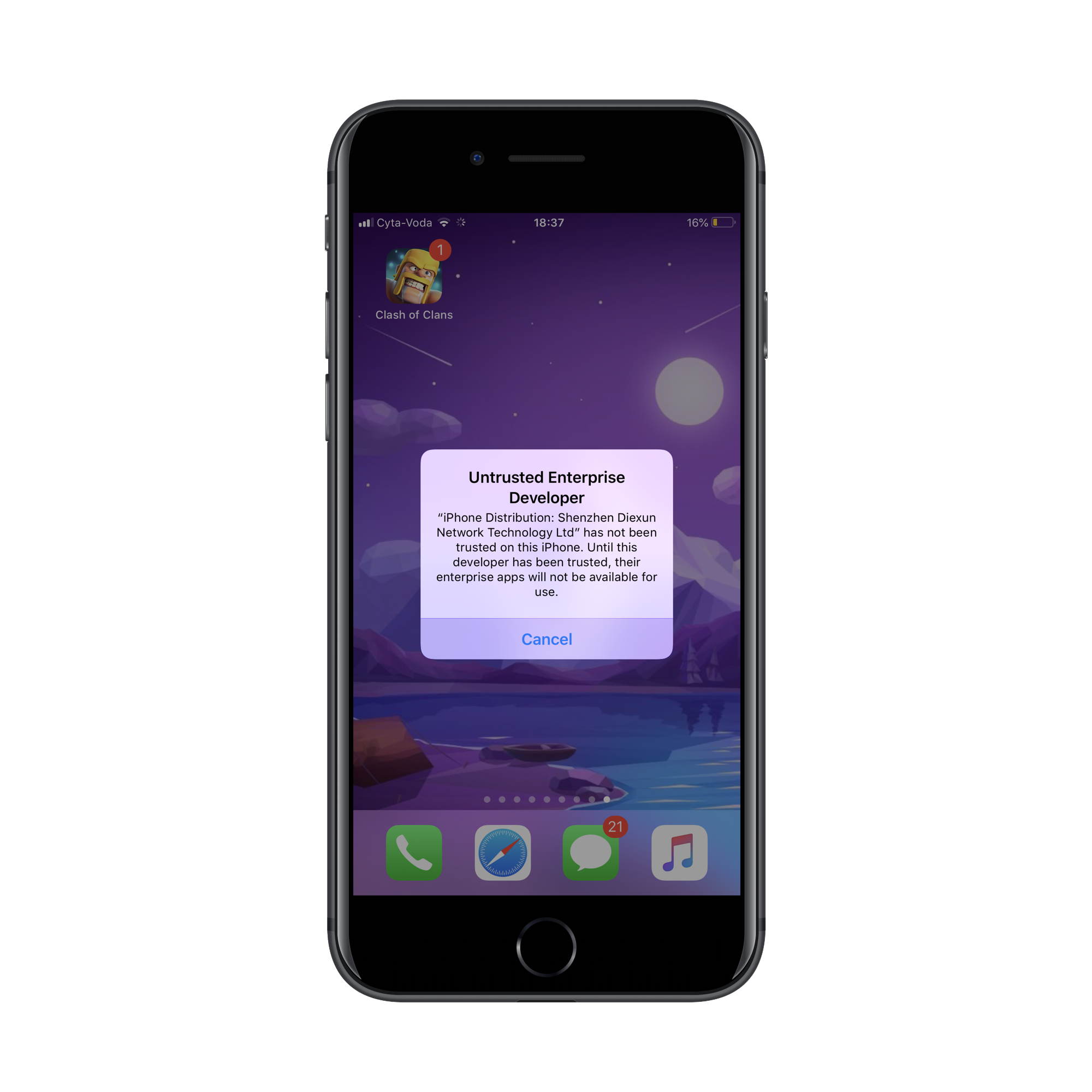 When you tap it, you should see a message. Tap Cancel and go to the Settings App.